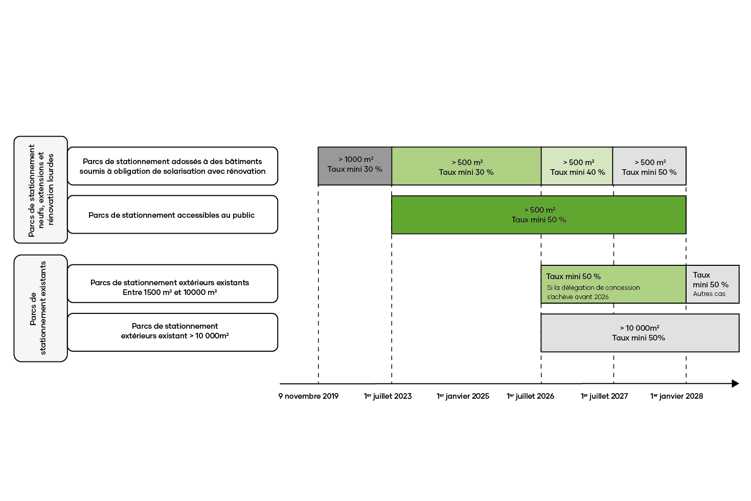 - Parkings couverts accessibles au public Le taux exact de couverture doit encore être précisé par décret.